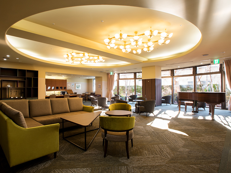 庭の緑と暖かな陽光に満たされ明るくて広いダイニングルーム、喫茶コーナーを併設し、ゆったりとした落ち着きのあるラウンジ、都心の夜景を一望できる9Fの大浴場など、カルムコート武蔵野は、洗練されたシニアにふさわしいパブリックスペースを特長としています。